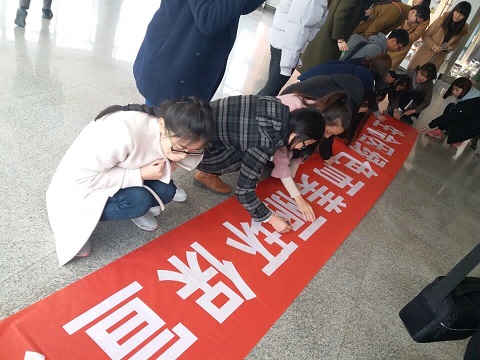 活动伊始,社团部部长赵伟就“环境保护”发表讲话,希望同学们能够养成保护环境的意识,从自身,从点滴小事做起。不仅要以身作则,而且要监督身边人的所作所为。随后,学生代表们纷纷表示要把保护环境当做自己的使命,爱护校园,积极参与到美化校园环境活动中去。最后,同学们纷纷在“生命因绿色而美丽环保宣讲”条幅上郑重签上自己的名字,以表达对活动的支持和自己的决心。