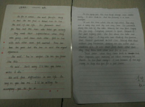 此次活动一经发出,就得到了同学的积极响应。此次微小说写作大赛要求同学们在学习部给出的“spring ,river ,flower ,moon ,night ,girl”等五组词语中任选一组用英语将其写成微小说,这充分考验了同学们的创新能力和英语表达能力。随后各班将作品交往系里进行评比。最终,李先静、梁荣兰、李琴等7人的作品脱颖而出并进入获奖名单。