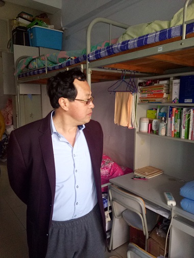 为进一步强化学生宿舍安全管理,营造平安和谐的生活学习环境,2017年4月1日下午清明节放假前夕,外语系党总支书记王保中带领学生科三名辅导员老师深入学生公寓,对学生宿舍进行了放假前安全检查。