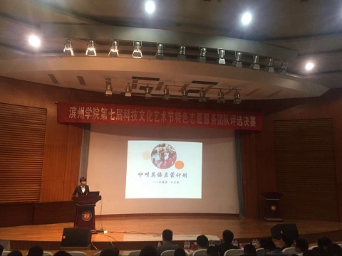 为认真学习贯彻习近平总书记系列重要讲话精神,建设丰富多彩的校园文化。4月24日,外语系于学院会堂参加滨州学院第七届大学生科技文化艺术节优秀志愿服务团队评比活动。我系青年志愿者协会全体成员参加此次活动,辅导员马盛楠指导此次活动。