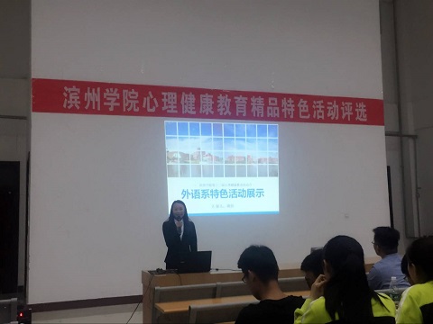 为增强心理健康教育活动的针对性和时效性,提高心理健康教育精品活动的质量和水平。6月7日,外语系于8号教学楼106教室参加滨州学院心理健康教育精品特色活动评选活动。我系姚怡同学代表外语系参加此次活动。