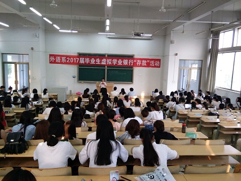 为进一步使毕业生更好地表达对母校、对老师、对同学的情感。6月13日外语系于一号教学楼106教室举行2017届毕业生虚拟学业银行“存款”活动。2017届全体毕业生及辅导员马盛楠参加此次活动。