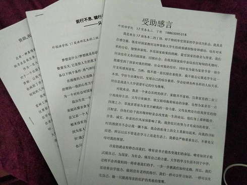 活动开始前,我院学生会同学向各班传达了此次主题活动的活动要求。随后,各班同学积极报名,根据活动要求,围绕自己的受助生活、学习和工作经历等方面撰写了自己的青春奋斗故事。每位同学内容真实,感情真挚,以自己的独特经历,传递着正能量。最后,经过层层选拔,2017级翟子涵、刘莹、杜苏萍、姜霞、孙明霞五位同学的作品脱颖而出,将代表我院参加校级比赛。