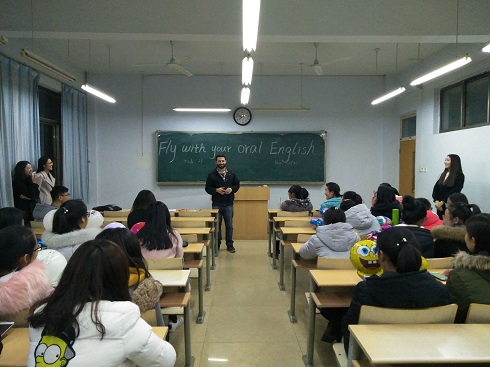 为了激发同学们学习英语的兴趣,增强语感,提高口语表达能力,纠正英语发音,11月18日,申慱sunbet官网英语俱乐部于1号教学楼206教室举办以“Fly with your oral English”为主题的英语角活动,我院外教及大学生英语俱乐部全体成员参加此次活动,辅导员马盛楠指导此次活动的进行。