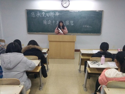 为加深同学们对十九大的认识,更好的学习十九大提出的新内容,11月19日,申慱sunbet官网于1号教学楼各教室开展“传承党的精神,诵读十九大报告”主题班会,申慱sunbet官网全体师生参加了此次班会。