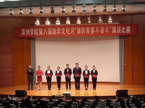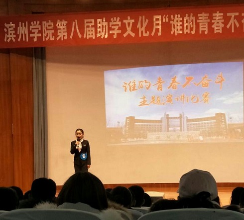 本次演讲比赛的主题为“谁的青春不奋斗”。比赛开始,主持人上台致开场词,并介绍了此次比赛的规则。随后,选手们依次上台演讲,我院王亚楠同学首先结合身边人的故事,向我们讲述了青春奋斗的必要性。紧接着又以自己的高三经历为背景,讲述了自己的青春奋斗的故事。最后,评委老师针对选手们的表现作出了精彩点评。我院王亚楠同学荣获优秀奖。