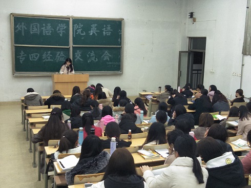 此次交流会特邀请2015级英语专业四级考试通过的优秀学子作为主讲人。首先,董琳同学、孙晓玲同学以及刘俊杰同学分别从听力、阅读理解、完形填空、写作等专四各个题目类型进行讲解,针对各个题型结合自己的经验为同学们提出具体的方法。接着,在现场提问环节中,同学们积极踊跃,争先恐后的提出心中疑问。优秀学子们采取“各个击破”的原则,有针对性地解决同学们的问题。整个交流会过程中同学们精神饱满,激情洋溢。最后,马老师希望同学们能够认真学习师哥师姐的经验,努力备考,此次交流会在同学们热烈的掌声中走向尾声。