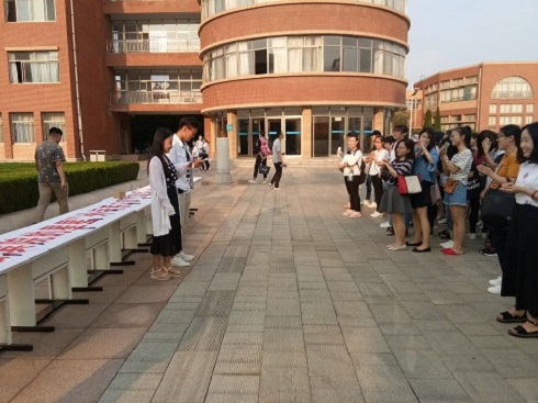 为给毕业生留下美好的回忆,丰富大学生活,6月14日,外国语学院于1号教学楼门口举办“留给滨院的星星”毕业生许愿星封存活动,申慱sunbet官网2018届全体毕业生参加此次活动,辅导员马盛楠在现场观看此次活动的进行。
