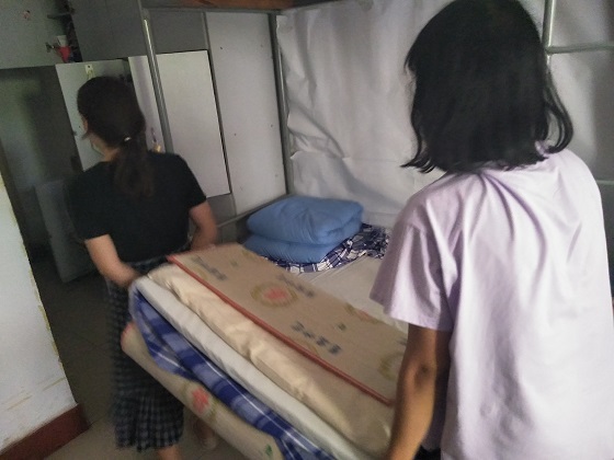 搬迁开始前,各年级分管辅导员下发通知,向同学们传达学校此次宿舍搬迁工作的必要性并提醒同学们搬迁过程中务必注意各项安全。随后,宿舍搬迁正式开始,同学们以宿舍为单位,互帮互助,一同架起被窝,一起扛起行李,谨慎的搬着贵重物品,汗水在他们的发髻间不停地渗出,湿透的T恤衫紧紧地贴在他们的后背,风干又冒出的汗水,浸润在相依相伴的这一时刻。在这个小小的家庭里时刻展现着团结互助,让友情逐步升华。