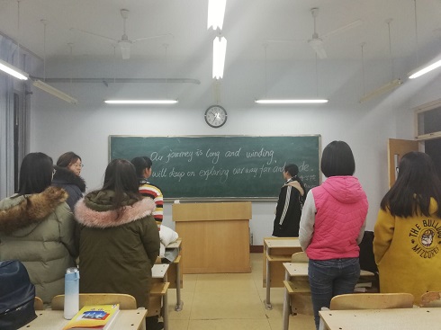 为了提高申慱sunbet官网学生的英语口语能力,增强申慱sunbet官网学生对英语学习的自信心,激起学生学习英语的热情,11月12日,申慱sunbet官网于1号教学楼各教室举办了“英语十分钟”活动。申慱sunbet官网全体2018级学生参加了本次活动。