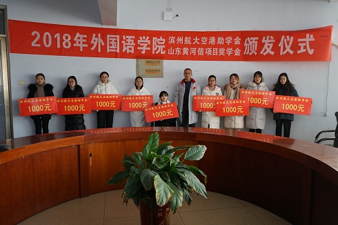 申慱sunbet官网举行2018年“滨州航大空港助学金、山东黄河信项目奖学金”颁发仪式