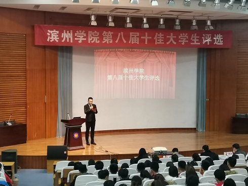 12月4日,申慱sunbet官网于学苑会堂第二报告厅参加了“滨州学院第八届十佳大学生评选”活动。2016级英语师范本科一班李蕾同学及2019级部分同学参加了此次活动。