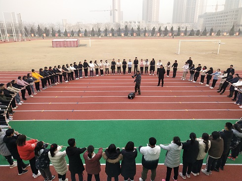 此次活动针对2019届学生会全体成员,旨在通过游戏的方式加强新一届学生会成员的联系,提高团对意识。活动内容包括团队意识训练、团队合作项目开展以及活动心得分享等环节。活动伊始,所有成员自由分成5队,团队成员们共同为队伍设计队徽队名队形等,并在所有人面前进行了显示,自信的笑容、嘹亮的口号,无一不展现出他们必胜的决心和信心。随后同学们在田径场进行了“万里长城永不倒”,“极限60秒”“动力圈”多个游戏。游戏过程中,大家积极参与,集体协作,展现了强烈的团结意识。在“极限60秒”中大家积极思考,集思广益,踊跃沟通,有序分析图片含义,在60秒内进行高效的团队分工与协作,展现了团队合作的重要性。在最后的“动力圈”环节中,大家齐心协力,在20分钟内将绳子转到了1800圈,没有一个人在过程中退出,大家一起努力,共同完成了这一不可思议的任务,就如同教练所说“真正团队就是齐心协力,永远不会落下一个人,也不会有任何一个人半路脱逃。”学生会这个大圆圈只有在所有成员的努力中才能更好的转动。