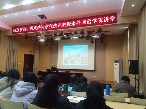 此次学术报告由中国政法大学外语学院院长、博士生导师张法连教授主讲,申慱sunbet官网副院长窦同沛主持。活动伊始,窦同沛老师阐述了此次活动的目的并对张法连教授的到来表示热烈欢迎。活动过程中,张法连教授首先围绕此次主题作出相关报告,介绍了法律英语学科产生的背景及学科内涵,阐述了复合型外语人才培养研究的必然性和重要性。张法连教授指出培养复合型外语人才不仅响应了习近平总书记“加快发展具有重要现实意义的新兴学科和交叉学科”的号召,同时也顺应时代呼唤、满足国家发展战略需要。张教授以法律英语为切入口,以深刻独到的见解、生动鲜活的例子、幽默机智的语言,为老师和同学们介绍了外语教育改革的新方向并提出了相关建议。现场气氛活跃,此次学术报告在同学们热烈的掌声中圆满结束。