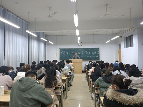 本次主题教育活动共分为五项内容。活动第一项,由马克思主义学院挂职副院长刘川老师开展党课培训。在宣讲中,刘老师系统而深刻的讲解了党的十九届五中全会精神。刘老师首先介绍了大会的主要内容与主要事项,并由此引申出了会议的重要判断,同时,指出全会深入分析了我国发展环境面临的深刻复杂变化,认为当前和今后一个时期,我国发展仍然处于重要战略机遇期,但机遇和挑战都有新的发展变化。随后,他向同学们提出期望,希望各位青年学生代表应当树立良好的榜样,树立家国意识,承担家国使命,以铁肩担道义,做时代新人。