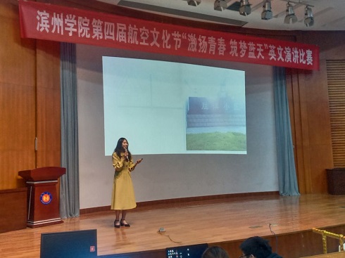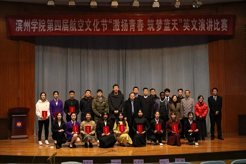 为激励广大青年学生积极投身于以航空为主要特色高水平应用型大学建设的生动实践中,12月19日,滨州学院第四届航空文化节“激扬青春,筑梦蓝天”英文演讲比赛在学苑会堂第二报告厅隆重开展,由校团委主办,申慱sunbet官网团总支承办。此次演讲比赛特邀申慱sunbet官网武书敬教授、副院长田纯广老师、沙磊博士、崔维乔老师以及外教Rodney Akko老师担任评委,来自各二级学院的15位参赛选手参加了比赛。申慱sunbet官网党总支书记王保中老师,滨州学院团委书记于峰老师、科技创新部副部长李琦老师莅临比赛现场。