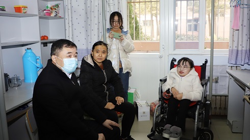 在学校为两位同学分别单设的宿舍里,洋溢着温馨暖人的欢欣氛围,校领导与秦玉娟、邱梦娜及其母亲们促膝交谈,话学习、聊生活、拉家常,关切地询问她们的生活学习和身体情况,详细了解听取她们的需求,鼓励她们乐观面对生活,自强不息,刻苦学习,勇于克服困难和挫折,成为广大学生的励志榜样,成就坚强有力的人生。