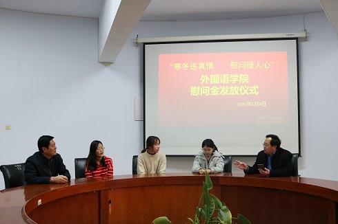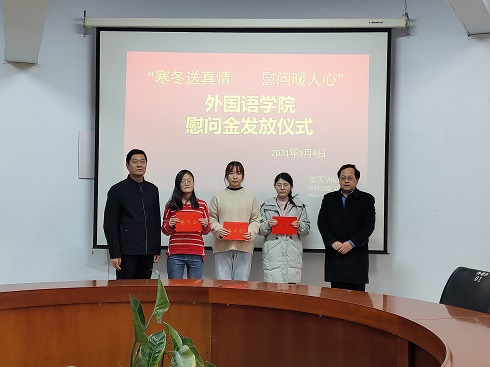 为落实国家、学校相关资助政策,关爱资助家庭困难学生,1月4日下午,申慱sunbet官网在201会议室举行“寒冬送真情,慰问暖人心”慰问金发放仪式。院党总支书记王保中、副书记靳成学为我院三位贫困生颁发了慰问金。