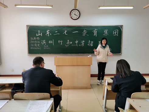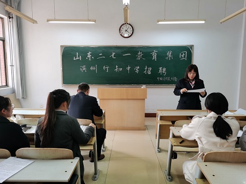 山东二七一教育集团是一家集教育研发、教学管理、培训交流、品牌推广、研学旅行和学生实习农场建设管理于一体的大型公益性教育集团。本次教师招聘活动采取测试、试讲、面试相结合的方式进行。活动伊始,山东二七一教育集团招聘负责人向在场各位表示亲切问候,简单介绍了集团概况,以及此次所需岗位要求,并为有意向的同学下发资料表。随后,应聘学生按照顺序依次上台试讲。同学们仪态大方,精神饱满,声音抑扬顿挫,课堂生动有趣,用自己的方式表现出一位人民教师的风采,给大家留下了深刻印象。面试最后,招聘人员向应聘生提出问题,应聘生作答。评委们根据应聘学生现场表现作出客观公正的评价和打分,面试现场进行得有条不紊、井然有序。