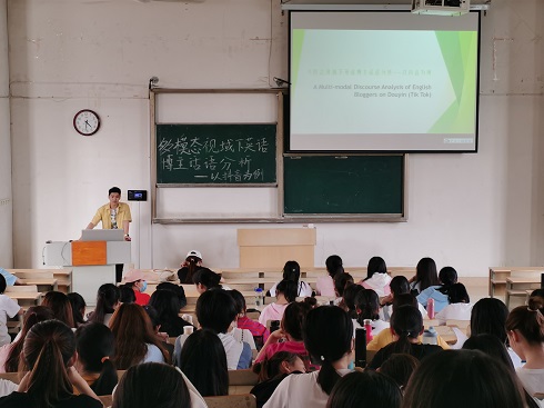 随着科学技术的发展和国际交流的日益频繁,英语教学过程中的多模态话语分析运用,大学英语教学变得越来越重要。为积极创造学术氛围,进一步凝练英语学科专业发展及研究方向,6月1日下午,申慱sunbet官网于1号教学楼308教室举办了“2021年多模态视域下英语博主话语分析—以抖音为例”学术讲堂活动。本次活动邀请了沙磊老师为我院学生进行讲解,申慱sunbet官网部分学生参加了此次活动。