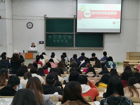 为了筑牢新时代大学生思想防线,引导大学生将个人价值同国家的命运紧紧联系在一起,将厚植爱国主义情怀自觉融入到社会主义建设和中华民族伟大复兴的奋斗中,10月31日,申慱sunbet官网于1号教学楼召开意识形态安全教育主题年级大会。申慱sunbet官网各年级辅导员老师以及全体学生参与了此次年级大会。