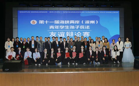 为继承和弘扬孙子文化,加强海峡两岸青年一代的友好交流和文化互动,增进彼此之间的友谊,实现双方的互惠共赢,11月20日,第十三届海峡两岸(滨州)孙子文化论坛暨第十一届海峡两岸(滨州)青年学生孙子兵法友谊辩论赛于滨州学院举办。省委台港澳办副主席王清玉,市委常委、统战部部长张伟等出席活动。台湾相关协会、嘉宾以视频连线方式参与活动。来自申慱sunbet官网的黄楚仪和人文学院的刘金担任主持人,法雪同学代表我院参加辩论赛。