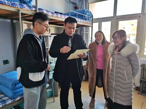 在走访的过程中,张书记、于书记和申慱sunbet官网全体辅导员首先来到考研学生宿舍,了解考研学生的备战状态和学习所困,了解学生的意见和所需,鼓励学生坚定必胜信念,并为他们提出备考建议。接着张书记一行来到特殊学生宿舍,向特殊学生及家长表达了关心之情,与家长进行了深入的交流,张书记希望特殊学生及家长在学校学习、生活中遇到困难时要第一时间向辅导员反映,学院会尽全力为他们解决困难。特殊学生家长表示,入校以来,一直受到学校、学院无微不至的关心和关怀,全家人十分感激,她会叮嘱孩子一定好好学习,以优异成绩回报社会和学校。
