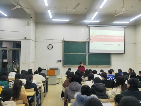 苏成荣老师首先对当前大学生的就业形势进行了详细分析,同时提到了日益严峻的就业形势和日趋激烈的就业竞争,给广大的高校毕业生带来了巨大的心理压力,部分大学生在择业过程中出现了焦虑、自卑、从众、依赖等心理。接着,苏老师从社会方面、家庭方面、个体差异等方面,向同学们阐述了影响大学生就业心理的因素。最后苏老师凭借个人丰富的就业指导工作经验,结合实际工作案例,就如何应对就业压力、调整就业心态、提升就业竞争力等方面向毕业生展开详细阐述。她鼓励毕业生“先就业后择业”,注重积累工作经验,远离“慢就业”和“懒就业”。