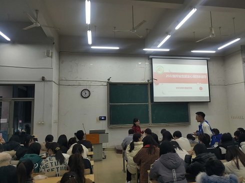 为进一步做好学院2022届毕业生就业工作,积极开展“我为群众办实事”活动,聚力增效促进毕业生就业,申慱sunbet官网于12月5日晚在1号教学楼308教室开展毕业生就业心理团体辅导活动,学院就业指导科科长苏成荣为全体2022届毕业生上就业心理团体辅导课。