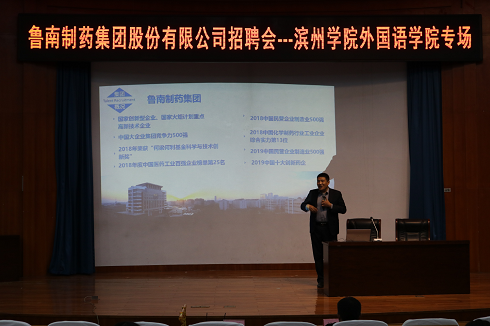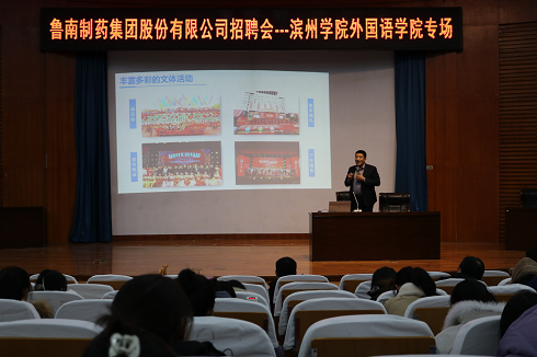 诞生于齐鲁大地的鲁南制药,成立于1968年,延续并弘扬着这方土地所传承的仁者风范,德行礼企、信达天下。招聘会伊始,鲁南制药招聘经理刘宗奎向在场各位表示亲切的问候,简单介绍了集团概况、集团文化、集团实力、集团潜力。同时,刘宗奎经理针对薪资、福利等毕业生关注的问题进行简要介绍,并对当前就业形势进行分析。