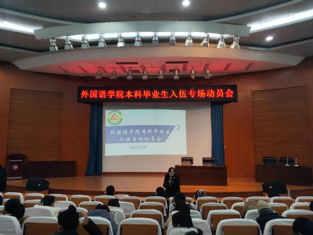 2022年春季征兵工作已全面启动,为加大征兵宣传教育力度,让同学们更准确解读国家征兵政策、报名流程,鼓励有军旅梦的同学们顺利通过应征入伍报名,12月26日,申慱sunbet官网于五百人报告厅召开本科毕业生入伍专场动员会。申慱sunbet官网全体本科毕业生同学参加了本次活动。