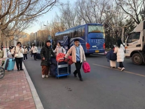 迎着朝阳,我院志愿者于七号宿舍楼、十一号宿舍楼下整装集合完毕。我院领导和辅导员老师亲临现场,与支教同学亲切交谈,嘱咐支教同学,要提高自我保护意识,遇到任何问题要及时与老师、父母沟通。安全支教,平安返校。其次,志愿者们帮助支教同学做好行李搬运,一个个行李,被志愿者有序运送到客车上,志愿者和支教同学的道别,以及支教同学眼中的期望,汇成了这条送别路上的一条风景线。小小的行李,彰显了大大同学情谊,志愿者用自己的行动助力此次支教行。