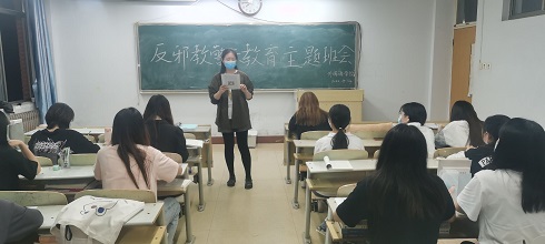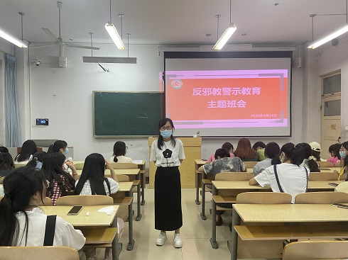 班会伊始,各班班主任为同学们介绍本次班会的主题和背景。随后,播放宣传片《警惕邪教对大学校园的侵袭》,视频通过一些真实案例,帮助同学们了解邪教传播的危害以及有关反邪教的法律知识,学习如何反对和抵制邪教,引导同学们提高警惕、增强防范意识。视频播放后,班主任老师号召同学们理性认清邪教的危害,对邪教歪理“不相信、不传播、不参与”。此外,各班主任强调,在防范新冠疫情的特殊时期,反邪教工作始终不松劲、不断线,全体同学务必提高思想认识,提高辨识能力,切实加强反邪教意识,努力营造“崇尚科学,反对邪教”的良好校园氛围。