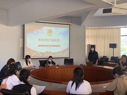 20英语本1团支书刘姝妍同学作为团干部代表发言。获得滨州学院2021年度“抗疫好青年”荣誉称号的她,作为我院学生代表参加了滨州学院“青春向党 筑梦蓝天”2022年五四青年节主题活动,并上台领奖。刘姝妍同学发言中提到,很荣幸能够现场聆听刘书记的重要讲话,作为一名青年大学生,要坚定理想信念,践行初心使命,努力学习专业知识,在青春赛道跑出更好的成绩!