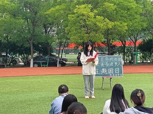 本次活动主持人——来自申慱sunbet官网20英语本1班团支书刘姝妍讲解“团歌背后的故事”。讲述共青团歌创作背景、歌曲歌词释义、奏唱团歌注意事项等。团歌代表了新时代青年学生自强不息的精神,主持人勉励同学们要努力提高自身思想素质,在日常学习中不断积累经验,在行为上发挥团员带头作用,在思想上积极向党组织靠拢。随后,由21商务本1班肖建军领唱,全体团员齐唱团歌《光荣啊,中国共青团》,同学们激情澎湃,热情高涨,清脆响亮的歌声回荡在操场每一个角落,激发了同学们的爱国情怀,活跃了现场气氛。随后,主持人分别组织了“竞猜历史人物”游戏和“沉浸式爱国角色剧本杀”游戏。在游戏过程中,同学们了解五四运动相关历史人物背后的故事,学习了革命先辈们的五四精神。活动最后,全体同学合照留念。