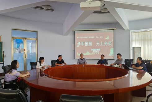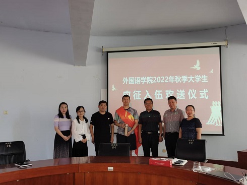 苏成荣老师首先介绍2022年我院大学生应征入伍报名以及走兵情况,2020级辅导员张瑾老师介绍了郝良治同学的基本情况。随后,学院书记、副院长等领导分别为郝良治同学送上祝福,对他积极响应党和国家召唤、参军入伍投身国防建设给予充分肯定,对他的光荣选择给予赞赏。院领导提到,中国人民解放军是光荣的战斗集体,成为这支军队中的一员,就意味着将要为党和人民的事业、为国家和人民的利益无私地奉献自己的一切,希望应征入伍的他能尽快转换角色,在军队的大熔炉中不断锻造、提升自己,争当一名听党指挥、能打胜仗、作风优良的新时代革命军人,成为一个对国家、对社会有用的人,希望他争取考取军校,在未来的军旅生涯中,锤炼军人本色,立志建功军营,充分展现外院学子的优秀精神风貌和素质品质。