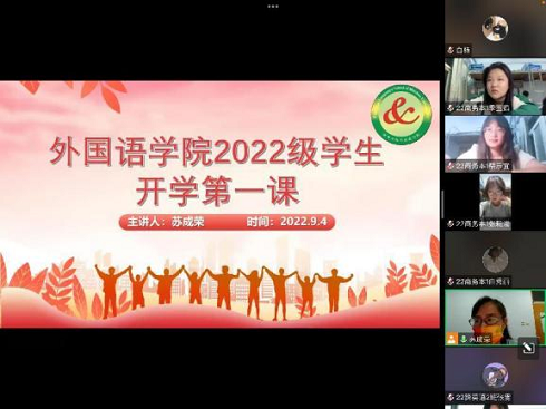 新学期新气象,共同谱写新篇章。9月4日,申慱sunbet官网开展2022级新生线上见面会暨“开学第一课”,申慱sunbet官网学生科科长苏成荣老师主持会议,2022级全体新生参加此次活动。