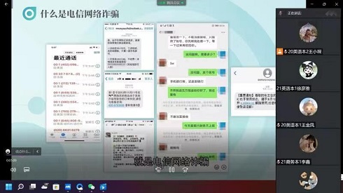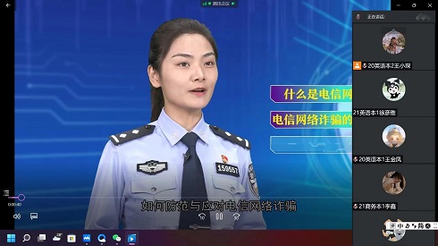 此次课程由国家反诈中心民警刘明竹和哈尔滨师范大学辅导员刘国权共同授课。课程结合实际案例,深入浅出地讲述了什么是电信网络诈骗、电信网络诈骗的高发类型、如何防范与应对电信网络诈骗、校园高发网络诈骗类型及防范举措等热点问题,深度剖析了大学生遭遇电信网络诈骗的原因,总结了预防高校电信网络诈骗的方法,传授了“三不一多”防诈骗小技巧,并推荐反诈利器——国家反诈中心APP,提高我院同学防诈骗能力。另外,老师向广大学生发出倡议,守护电信网络晴朗,维护电信网络安全,防范电信网络诈骗,大家一起努力,从小事做起,共同为维护校园的和谐稳定打造坚强之盾。课程结束后,同学们反响热烈,纷纷表示收获颇丰,进一步意识到网络安全的重要性,积极分享感悟和体会。最后,同学们现场参加了“守护青春 网络有你”2022年全国大学生网络安全线上知识答题活动,进一步巩固了网络安全知识,提高了防范网络诈骗、安全使用网络的能力。