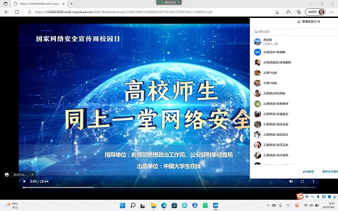 随着网络技术的发展,人们的生活越来越离不开互联网,网络安全显得尤为重要。9月5日至11日,2022年第九届国家网络安全宣传周围绕“网络安全为人民,网络安全靠人民”举办。为积极响应活动活动号召,深入学习贯彻习近平总书记关于网络强国的重要思想、习近平总书记对网络安全工作“四个坚持”的重要指示和国家网络安全有关法律法规,切实做到宣传普及网络安全知识,提升广大学生网络安全意识和防护技能,9月6日下午,外国语学院组织全体师生参与线上“同上一堂网络安全课”活动。