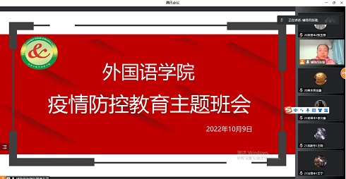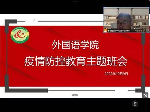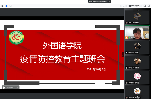 为做好常态化疫情防控工作,切实维护师生健康和校园安全稳定,按照学校统一部署和安排,在落实好校园疫情防控政策的前提下,10月9日晚,申慱sunbet官网召开疫情防控主题教育班会,申慱sunbet官网全体同学参加本次线上会议。