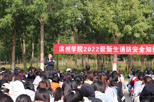 为进一步增强学生消防安全意识,普及消防安全知识,提高同学们火灾自防自救能力,预防和遏制各类火灾事故发生,10月8日,我校在新体育场北侧开展了消防安全知识培训讲座。申慱sunbet官网2022级全体新生参加此次活动。