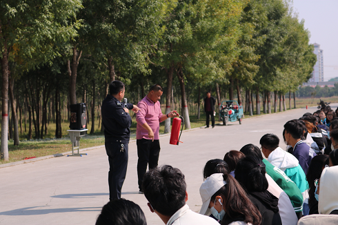 活动伊始,消防民警以同学们生活中的“小疏忽”为例,为同学们讲述总结了发生在社会和各高校各种各样的火灾案例,要求同学们自查自省,改正不良习惯,杜绝安全隐患。民警口中的实验室的爆炸性火灾或是宿舍楼电瓶充电引发的火灾,都为同学们敲响了“消防就在身边”的警钟。民警提醒同学们要在宿舍安全使用合规电器,宿舍内人走断电,不使用大功率电器,牢记消防安全知识。随后,民警为全体同学系统讲解了消防安全基本知识、介绍了不同情况下不同的灭火和逃生疏散知识、消防设备器材操作以及火场常用逃生方法。在消防安全方面,民警为同学们详细讲解了消防基础知识、消防设施结构和用法、预防与灭火措施、火场自救与逃生等相关的知识。在消防基础知识层面,民警向同学们普及了一些常见的起火原因,包括用电不慎,吸烟不慎等。在认识消防设施和预防与灭火措施层面,从家庭,学校以及如何应对突发火灾和拨打火警119电话的流程进行了讲解。最后,部分同学自愿参与到灭火器的实践操作演示中,在民警的指导下认真学习了灭火器的使用方法。