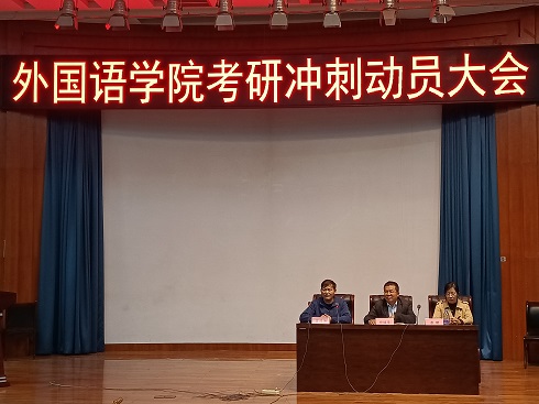 为帮助外国语院学子了解今年考研现状,科学合理的规划考研进程,在考研冲刺阶段改进学习方法,提高学习效率,充分鼓舞外院学子的考研士气,10月16日晚,申慱sunbet官网于学苑会堂第二报告厅召开考研冲刺动员大会,申慱sunbet官网党总支书记曲福华主持会议,副院长窦同沛、副院长赵霖、副院长田纯广、考研联系人崔珊老师出席会议,毕业班班班主任、考研指导老师和2023届毕业生参加此次动员大会。