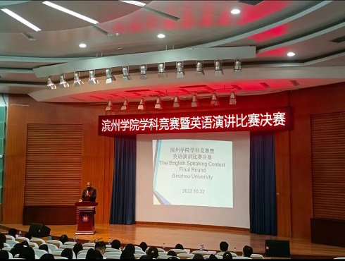 为了营造良好的学习氛围,激发同学们学习英语的兴趣,增强我院英语学习的热情,提升同学们的英语知识储备,发挥同学们的特长,10月22日晚,2022年滨州学院“外研社·国才杯”全国英语演讲大赛决赛阶段正式拉开序幕,此活动由申慱sunbet官网承办。申慱sunbet官网党总支书记曲福华、副院长窦同沛、副院长赵霖、副院长田纯广出席活动。