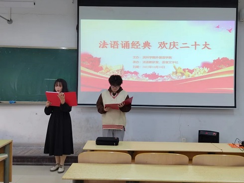 恰逢盛世,为传承和弘扬中华优秀传统文化,更好地展现蕴含中国智慧的儒家文化经典,同时,弘扬爱国主义精神,丰富校园文化生活,申慱sunbet官网于2022年10月18日举办了“法语诵经典 欢庆党的二十大 ”活动,申慱sunbet官网曲福华书记、法语教研室全体教师出席活动,2021级法语班全体学生以及经管学院部分学生参加了此次活动。