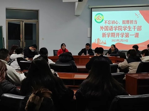 不忘初心,挺膺担当。2月19日,申慱sunbet官网于一号教学楼201教室召开了学生干部新学期开学第一课。会议由学生科科长苏成荣老师主持,申慱sunbet官网党总支书记曲福华,辅导员梅竹、张瑾、朱运通老师出席会议,学生组织主要成员、班级主要学生干部参加会议。