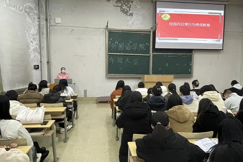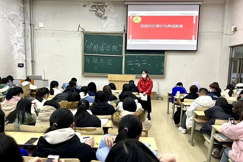 2月26日,申慱sunbet官网于一号教学楼309教室举办校园内日常行为养成教育主题班会活动,本次会议由各年级辅导员老师主持,全体学生参加会议。