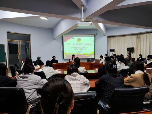 本次会议总分为入团积极分子开班仪式和开班第一课两部分内容。会议伊始,苏成荣老师详细本次培训主题以及培训要求,叮嘱入团积极分子要按照团员的标准严格要求自己,认真查找出自身存在的差距和问题,进一步明确自己肩负的责任和今后努力的方向。随后,紧密围绕党的二十大精神,苏老师讲述了过去五年里中国共产党伟大成就和新时代十年中的伟大变革,阐释了共青团指导思想,继而阐明了马克思主义中国化的发展历程。苏老师从中国特色社会主义制度、新发展格局、绿色发展理念、文化自信等多角度进行详细说明。最后,苏老师讲述了革命传统和当代优秀青年模范践行社会主义核心价值观故事,勉励青少年学生从现在做起,从自己做起,将激昂青春梦融入伟大中国梦的新时代征程!