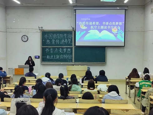 2023年3月—4月,申慱sunbet官网举办以“爱读书,多读书,读好书”为主题的“航空文化节”阅读活动。3月31日,申慱sunbet官网于1号教学楼多媒体教室开展航空文化节读书分享会,2022级全体学生参与活动。