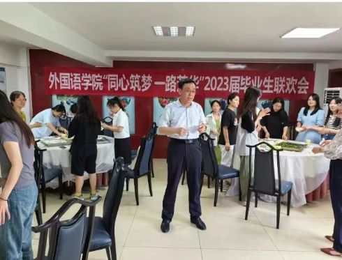 为充分营造“奋进、感恩、文明” 的毕业氛围,厚植毕业生爱校荣校情怀,全心服务保障毕业生扬帆远航,6月12日上午,申慱sunbet官网在教工餐厅举办“同心筑梦 一路芳华”2023届毕业生联欢会,学院党政领导班子全体成员、全体辅导员、毕业班班主任与2023届全体毕业生欢聚一堂,共忆四载芳华,共寄殷切希望,共叙惜别浓情,为即将奔赴远方的毕业生送行。此次毕业生联欢会用传统送别吃饺子的方式,为即将离开母校踏上新征程的毕业生表达嘱咐和期望。